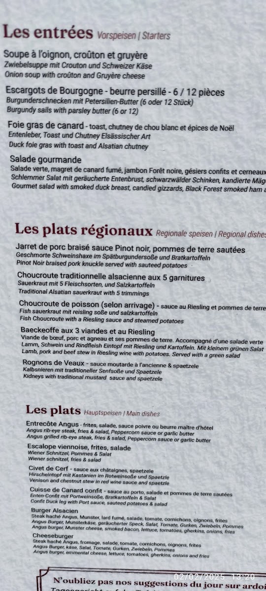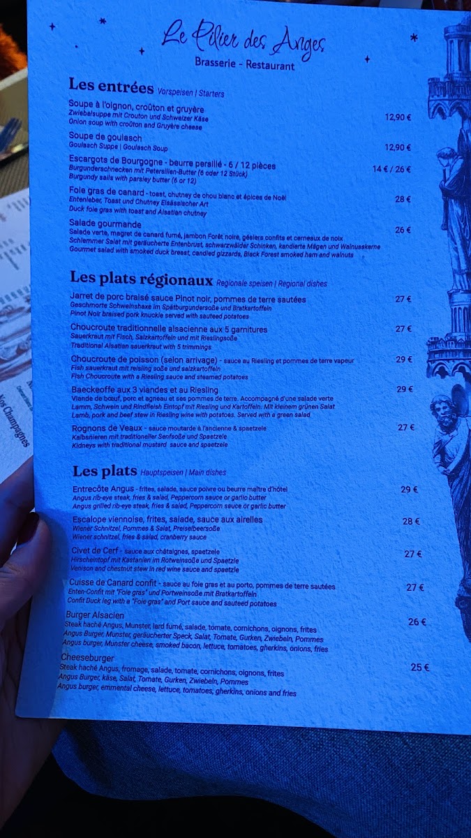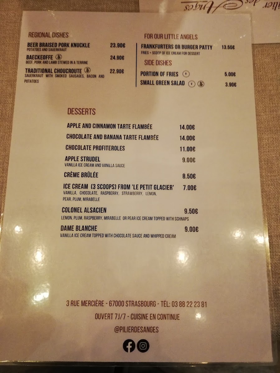 **About Le Pilier des Anges**Nestled in the heart of Strasbourg at 3 Rue Mercière, Le Pilier des Anges stands out as a charming culinary haven. This historic eatery is known for its warm ambiance and generous portions, making it a favorite among families and travelers alike. Diners appreciate the swift service and the hearty, local dishes that reflect the essence of Alsace. Highlights include the exquisite Alsace red wine, which even non-wine drinkers rave about. With its delightful wooden decor and proximity to the Strasbourg Cathedral, Le Pilier des Anges offers a memorable dining experience, blending local charm with delicious comfort food.